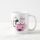 Une jolie tasse d'Halloween personnalisée éffrayante et amusante, avec un chat noir et un fantôme qui se refroidit dans une tasse jack-o-lanterne rose. Le texte dit "Du café fraîchement préparé", mais vous pouvez le changer avec le vôtre. Parfait pour le café, le thé ou le cacao chaud. © ArianeC Illustrations-Tous droits réservés