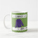 Ce design présente un arrière - plan vert amusant avec des pois blancs. "JE NE PEUX PAS MENTIR. J'AIME. DOUCEUR. TEMPS." typographie le long du dessus et du bas de la tasse avec un pull violet.
