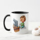 Mignonne tasse avec un petit garçon jouant à des jeux vidéo tout en sortant sa langue. Grand cadeau pour les joueurs et les petits enfants. Illustration de Patricia Alvarez.