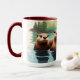 Une famille ludique de loutres profite d'une journée dans l'eau. Des loutres mignonnes et câlées nagent dans un lac serein. Heureux loutres s'amusant dans un cadre forestier pittoresque. Une image de la loutre qui fait chaud au coeur dans la nature. Profitez d'une tasse de café avec ces adorables amis de la loutre.