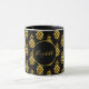 Un motif d'ananas tropical moderne teinté de faux or.  Le noir est élégant et classique comme la couleur arrière - plan.  Écriture de style et modèle de couleur or en lettres manuscrites pour votre nom.