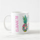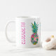 Cette tasse à café en céramique personnalisée est composée de mignons ananas tropicaux verts et roses. Personnalisez avec votre choix de nom ou de texte spécial. Amusant pour des sacs cadeaux personnalisés et des fournitures de fête.