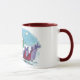 Cette tasse traditionnelle de vacances présente une jolie image d'une scène de vacances d'art aquarelle qui est maintenant dans le domaine public. Il représente une magnifique scène hivernale d'un cheval traîneau tiré avec la famille et leur chien courant à côté. Le traîneau s'approche d'un chalet, la pleine lune de nuit illuminant le paysage enneigé en dessous. Belle !