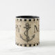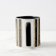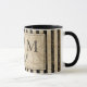 Cette tasse en céramique monogramme nautique est ornée d'un arrière - plan rayé noir et beige avec une ancre noire au centre et une superposition carte du monde. Personnalisez le monogramme avec vos propres initiales. Conçu par l'artiste mondialement connu Tim Coffey.