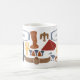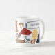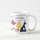 Cette tasse de café est prête à être personnalisée avec un nom en lettres bleu clair à l'intérieur et cadre de style cartouche égyptien. Le nom apparaît de part et d'autre de cette tasse et accompagne un collage de graphiques inspirés de l'Egypte ancienne. Mes illustrations représentent le dieu Thoth, la déesse du chat Bastet, le scarabée sacré, le signe de vie, la reine Nefertiti, le roi Tut, Anubis et plus encore. Les illustrations sont dans les tons bleu, orange, rouge, jaune et marron sur cette tasse blanche.