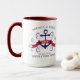 Elégante ancre de bateau nautique avec des tourbillons bleus et une bannière rouge. Modèle d'échantillon mariage personnalisable.