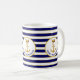Ancrage de famille et couronne sur Mug à café rayé bleu et blanc.