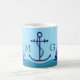 Image Nautique simple et élégante constituée d'une Ancre avec Double Monogramme sur un arrière - plan bleu stylisé de mer avec deux voiliers. Un cadeau élégant pour toute occasion.