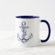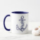 Décor maritime côtier thème blanc et bleu marine ancre tasse à café