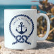Mug Ancre nautique et corde Nom du bateau Marine Bleu