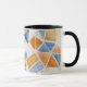 Aquarela com formas geométricas nas cores base, laranja e azul, pintadas de maneira intuitiva e coordenada pra deixar espaços harmônicos entre os formatos, tornando a obra única e agradável aos olhos
