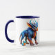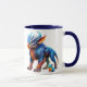 Un puissant animal hybride fantastique avec des écailles détaillées aux couleurs bleu électrique et orange incandescent, textures ultra réalistes en 3D, telle une chimère, ventre lumineux, griffes acérées, grandes ailes repliées, posture majestueuse et intimidante. ombres réalistes, finition brillante, rendu haute définition. À ses côtés, une petite créature mignonne ressemblant à une souris magique, avec des couleurs assorties (bleu et orange), au style adorable et contrastant avec le dragon. Les deux personnages sont centrés, parfait pour une illustration de collection, produits dérivés fantasy ou visuels pour enfants.