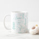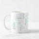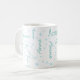 Répétant beaucoup de petits coeurs bleu clair mouchetés et mélangés avec votre nom choisi. Ce qui distingue cette idée, c'est la touche personnalisée de votre nom, élégamment ajoutée sur toute la surface blanche. Le nom répété forme un motif bleu turquoise gracieux et harmonieux, donnant au produit un charme unique. Un design de typographie sympa et féminine pour lui offrir. Ajoutez votre nom et faites-le le vôtre ! Cette tasse personnalisée est idéale pour un usage quotidien et fait un cadeau amusant pour les amis, la famille ou les collègues. Il suffit de taper le nom et de créer une tasse de nom personnalisée qui est unique, utile et totalement vous. Idéal pour le café du matin, le thé ou le bureau !