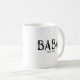 Conception de tasse à café Baba avec l'année de création, avec une police noire tamponnée sur fond blanc. Cliquez sur personnaliser pour modifier la couleur de fond !. Visitez notre boutique pour voir cette tasse dans un grand assortiment de noms de grands-pères.