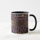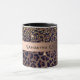 Cadeau élégant, cool, glamour et féminin pour un cadeau d'anniversaire de 50e (ou n'importe quel âge) avec motif léopard brun, doré et noir, décoré de confettis dorés. Personnalisez et ajoutez un nom et 50 ans. Un faux brassard métallique en bronze. Script de style en lettres de couleur noire, lettres. .