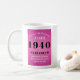 Tasse d'anniversaire rose et gris personnalisée pour ceux nés en 1940. Customisez facilement le texte à l'avant et à l'intérieur de cette tasse de café d'anniversaire en utilisant le modèle fourni. Une partie de la gamme de normes d'établissement des dessins et modèles.
