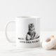 Un chat amusant est assis sur un sol avec ses pattes avant croisées et sa queue à gauche. Une impression d'animal un peu fatigué. La journée fut difficile et pleine d'expériences. Appelons-le un jour. Élégante tasse à café unique pour tout le monde. Conception personnalisable. Vous pouvez modifier ou supprimer le texte. N'oubliez pas de choisir un autre style ou une autre couleur de la tasse. Vous pouvez également transférer cette conception à un autre produit de votre choix, il suffit d'utiliser une option à droite de cette description.