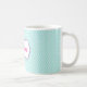 Beautiful aqua blue and lavender purple custom name coffee mug. Makes perfect gift for anyone special, including you! Pink lettering. Customizable.