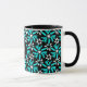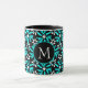 Mug Aqua Blue & Black Batik Flower Motif Monogramme