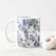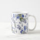 Mug Aquarelle bleu fleurs roses plumes blanc