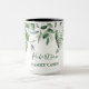 Nom de famille Cabine Aquarelle Botanique Verdure La Mug de café comprend le lierre, la fougère et les feuilles de sauge.