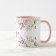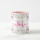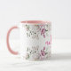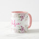 Une belle illustration d'arrangement floral à l'aquarelle peinte à la main rose sur une tasse avec votre propre monogramme et nom personnalisés. Un beau cadeau personnalisé romantique pour les filles qui aiment les fleurs roses du printemps et de l'été, les roses, les pivoines.