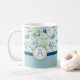 Mug Aquarelle Fleurs Monogrammes Bleu Vert