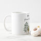 Cette tasse à café de Noël simple et élégante, mais festive, présente une aquarelle confortable. Une image d'une forêt d'hiver est placée à travers le fond, avec divers arbres parsemés de neige. Un message de voeux "Joyeux Noël" est imprimé au-dessus d'un exemple de nom de famille en haut. Vous pouvez personnaliser la tasse pour inclure votre propre nom ou texte personnalisé.