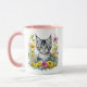 L'art de l'Ai dépeint un adorable chaton tabby gris mignon entouré de jolies fleurs jaunes et roses, dans un style aquarelle. Ajoutez un nom dans la zone de personnalisation. Cette tasse dit Tante mais vous pouvez changer cela en nom ou autre membre de la famille.