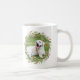 Une douce aquarelle illustration d'un chien sucré portant une écharpe rouge et un casquette sur un arrière - plan de la verdure de Noël. Personnalisez avec le nom et la photo de votre animal.