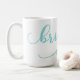 L'une des choses les plus amusantes pour se marier est le temps passé avec ses copines pendant que vous planifiez votre grande journée... et toutes les journées amusantes qui mènent à la fête principale. Les demoiselles d'honneur sont spéciales et vous voulez acheter des cadeaux qui montrent à votre tribu que vous les aimez. Cette tasse - l'une des nombreuses tasses sur le thème de la demoiselle d'honneur dans cet ensemble mariage - fait un cadeau parfait pour vos filles spéciales. | Le bleu vif et l'ombre turquoise claire de l'aquarelle dans cet ensemble ont une élégance simple et artistique. Le graphique qui apparaît sur cette tasse blanche se lit simplement "mariées" et "bonne" et est rendu dans une police de script magnifique utilisée sur d'autres éléments de cette collection. Le mot (deux parties mais toujours un mot, non ?) a été recouvert du motif bleu/turquoise sombre vu dans l'arrière - plan des invitations et autres imprimés. Beaucoup trop énorme pour être lu en une seule vue, l'effet est amusant, audacieux et artistique. | Mariage d'aquarelle Ombre bleu et Turquoise conçu par Melody Watson pour Paper Muserie.