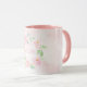 Tasse à café/thé sur mesure avec nom "maman" ou personnalisé encerclé dans une élégante couronne de poitrine rose d'aquarelle.