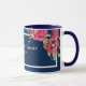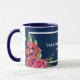 Mug Aquarelle Rouge et rose Fleurs bleu foncé Marine