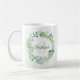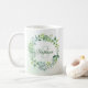Cette tasse de verdure personnalisée comprend une couronne d'aquarelle moderne avec des feuilles d'aquarelle et du feuillage. Personnalisez le monogramme avec votre nom et votre initiale.