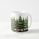 Un sapin de Noël à la décoration solitaire se dresse au milieu d'un bosquet d'arbres enneigés qui entourent votre boisson chaude pendant la période des Fêtes.