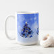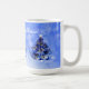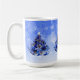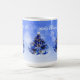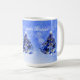 Arbre de Noël décoré bleu avec la neige et flocons de neige personnalisable, Noël, arbre, avec, texte, mug, décoré, bleu, neige, blanc, neige, neige, ornements