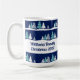 Beau ciel bleu minuit avec sapins de Noël décorent cette jolie tasse de vacances familiales personnalisée. La neige longe la belle forêt et des flocons de neige blancs parsement dans l'air de nuit. Grands cadeaux de gardiens pour commémorer une réunion de famille.