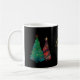 Voici deux mignons, arbres de Noël peints à la main scintillants d'aquarelle. Un est peint en verts et autre en rouge. Le texte d'or lit : La de La de La de La de fa