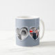 Customisé 25e anniversaire mariage argent deux coeurs argent photo mug, personnalisez avec vos propres couples photo passé et présent, année de mariage et dates d'anniversaire. Autres cartes mariages 25e argent assorties, cadeaux et produits de fête disponibles. Art et design de Sarah Trett pour www.mylittleeden.com