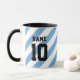 Argentine ventilateur de football personnalisé jersey numéro café Mug. Coupe à rayures bleues avec nom personnalisé et numéro de sport chanceux. Idée cadeau d'anniversaire cool pour les amis sportifs et la famille.