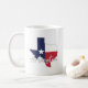 Arlington, Texas flag carte tasse café. Ce design présente "Arlington" dans un script, police de style calligraphie en blanc avec contour gris clair sur la carte de l'état qui est rempli avec le drapeau du Texas. Cette tasse à café de la ville est une excellente façon de profiter de votre café et de montrer que vous êtes fier d'être d'Arlington, TX.