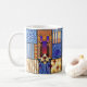 Laissez-vous charmer par cette chope exquise ornée d'un motif Art déco abstrait. Des touches radieuses d'or dansent sans discontinuer avec des bleus profonds et des blancs croustillants, créant une fusion captivante d'élégance et de modernité. Le design complexe, qui rappelle l'époque Art déco intemporelle.