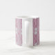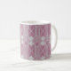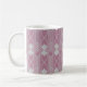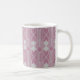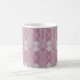 Cette tasse a un design art déco de formes et de lignes diamant sur un champ de violet.