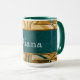 Add your name to an elegant Art Deco style design of green and gold stripes with leaves.
