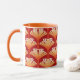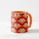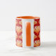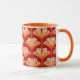 Mug dans une reproduction d'un lys Art Déco stylisé, motif de papier peint - un dégradé de flamme profonde orange à blanc, accentué d'or moutarde, sur un arrière - plan profond mandarin orange