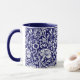 Mug Art Nouveau Carnation Damask, Navy et Blanc
