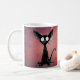 Art oriental drôle mignon de chat noir sur un arrière - plan rose et pourpre vintage sur cette tasse de café mignonne de chat par Paul Stickland. Idées plus drôles de cadeau de chat noir de charges de petites pour des amoureux de les chats sur StrangeStore.