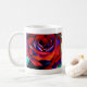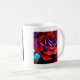 Tasse de Saint-Valentin avec design original de fleur de macro rose rouge anglais à partir d'aquarelle originale peinture de Sacha Grossel Art. Gros gros plan de fleur pourpre avec reflets bleus inspirés par l'amour et la passion.