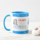 Autour du monde par avion. Une tasse à café élégante et unique. Image de l'art texte du code de l'aéroport international ATL, textes Atlanta, États-Unis, coordonnées géographiques, et plus sur les deux côtés de la tasse Le même concept avec une image silhouette d'un gros avion à passagers au milieu de la tasse. Hans Christian Andersen, personnalisable, cite : "Se déplacer, respirer, voler, flotter, gagner tout ce que vous donnez, parcourir les routes des terres lointaines, voyager c'est vivre" - imprimé au-dessus des rubans bleus en haut et en bas de la tasse. Vous pouvez modifier toutes les images et vous pouvez modifier ou supprimer deux textes modèles indépendamment. Si vous avez besoin de déplacer des images, changer la police et la couleur de la police, la couleur des rubans, s'il vous plaît, utilisez le bouton "Personnaliser". Soyez créatif, customisez, achetez le beau cadeau pour vos membres de famille, amis, compagnie, ou pour vous-même, profitez, et soyez heureux!