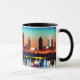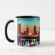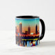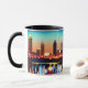 Tasse à café dans une illustration de l'horizon d'Atlanta Georgia la nuit, sous un ciel étoilé, avec des lumières brillamment réfléchies